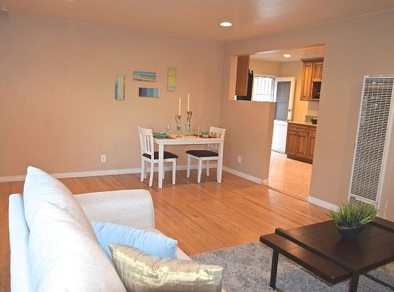 CUTE- CUTE- CUTE! Adorable starter home in established neighborhood walking distance to elementary school! Remodeled charmer with original hardwood floors throughout. Spacious living and dining room with recessed lighting! Gorgeous remodeled kitchen has beautiful granite counters. Both bathrooms updated with new vanities and fixtures and tile floors ? full bath has new tile surround. Beautiful contemporary color palette makes this home warm and inviting. 3 good sized bedrooms. Dual paned windows and slider. Big backyard with fruit trees. Single car garage with roll-up door and auto opener. Close proximity to stores, transportation and freeway access. Priced to sell!