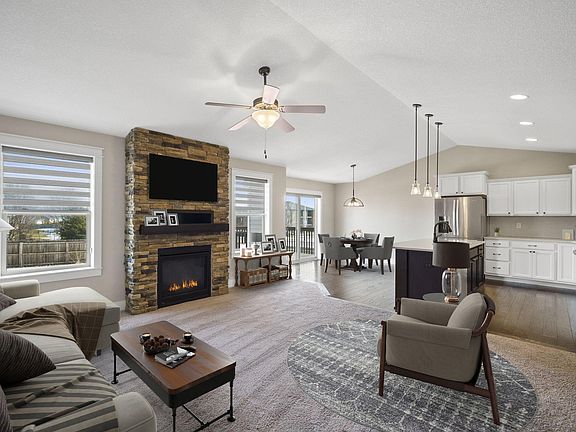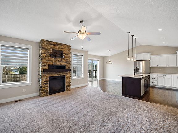 Welcome Home!! This better than new home has been meticulously maintained and is ready for you to move right in. The living room feel comfortable and bright with large windows, a vaulted ceiling, and a stone fireplace. The modern kitchen includes a center island, pendent lights, quartz countertops, SS