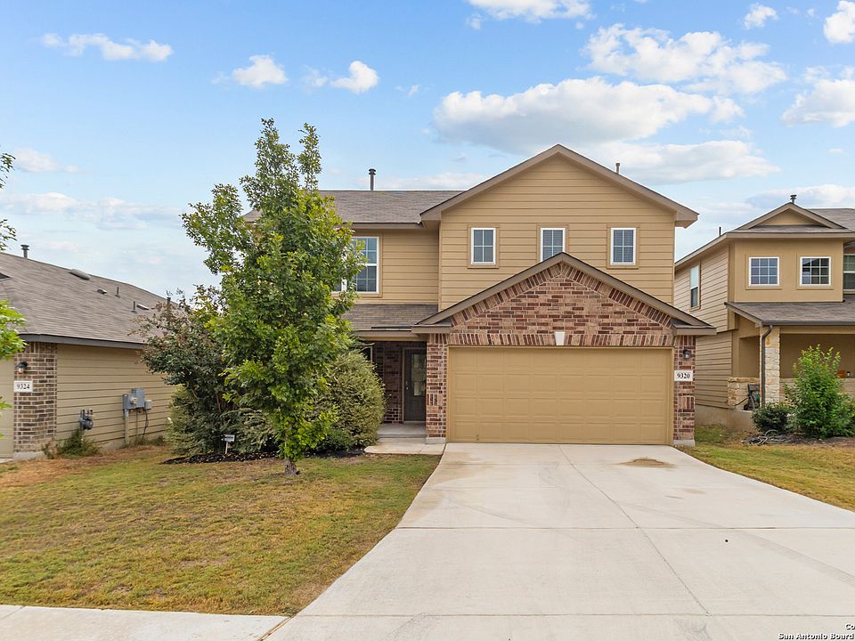 Welcome to 9320 Cord Grass located in the desirable Northwest San Antonio area. This beautiful two-story home offers 4 bedrooms, 2.5 baths, and 2,323 square feet of comfortable living space. The first floor features a separate dining area that opens to a big open floor plan connecting the kitchen and living room. The kitchen includes granite countertops, stainless steel appliances, ample cabinet space, and a breakfast bar that overlooks the living area, creating a perfect setup for entertaining family and friends. The primary suite is conveniently located on the main level and includes a private full bath and a large walk-in closet. Upstairs you will find a generous game room, three additional spacious bedrooms, and a full bath. Step outside to a covered patio that is ideal for outdoor dining and relaxation. This home is move in ready and located in a community near shopping, dining, schools, and major highways for easy commuting.