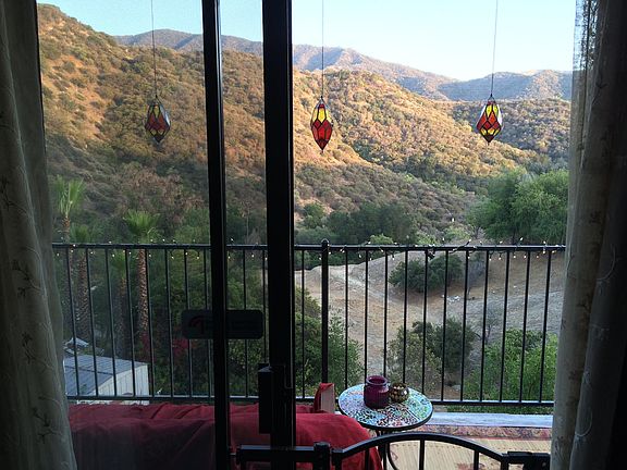Large canyon home with views. Spacious hillside tucked in quiet canyon setting. Features large fireplace vaulted ceiling, wet bar, central air and heating,soft water, 2 balconies with view, washer and dryer hookups, 2 car garage with long driveway. large den that can be used as 4th bedroom. please contact Ana 818-512-4582