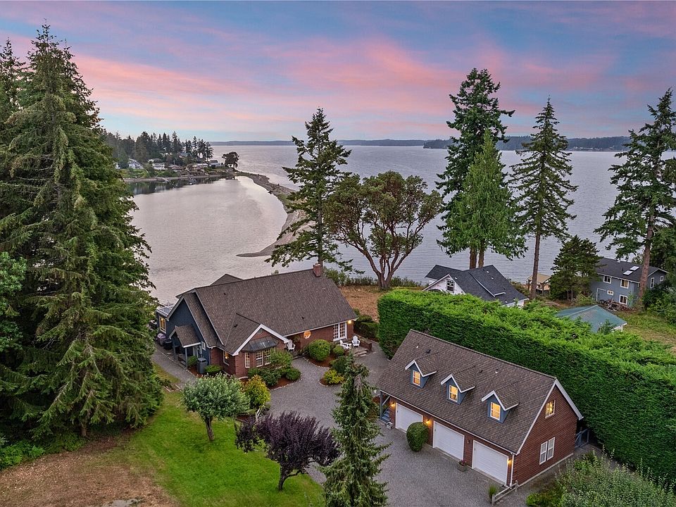 Perched atop the mouth of Vaughn Bay with over 100-feet of waterfront this luxurious property offers the ideal PNW getaway. Main house faces south with unobstructed 180-degree views of the bay and South Puget Sound. Hardwood flooring, wood wrapped windows, soaring ceiling entry and European style chefs kitchen. Entertain guests in the expansive living room with fireplace and custom wet bar. Well appointed guest house sits above the 3-car detached garage. Large patio creates a perfect setting for outdoor dining and enjoying incredible sunsets. Wide path meanders down to rec area above the bulkhead, perfect for storing kayaks and water toys. Tidelands with shellfish, 20-minutes from Gig Harbor, gated entry, dog run and boat launch nearby!