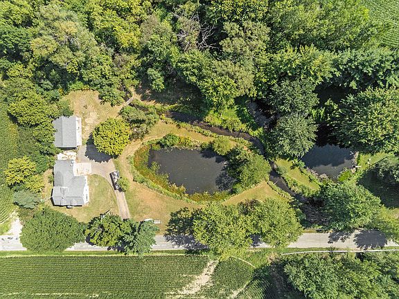 Hello investors! This 1890s farmhouse is a diamond in the rough awaiting your best Chip and Joanna Gaines' transformation! Truly exceptional property features its own pond w/bass, perch and bluegill and a lovely stream that passes through. The home sits on approx. 1.3 acres on a quiet country road offering 3 beds 2 full baths and lots of pluses including main floor laundry hook-up, hardwood floors ready for refinishing. Roofs on house and both garages about 10 years old, 5'' well in 97', furnace approx. 2012, newer water heater and windows. The 3 stall has concrete floors, elec and overhead heater. Vision and hard work will make this a cherished home or flip. Being sold ''as is''. Buyers may have any inspections however seller will make no repairs, concession or pay for any inspections.