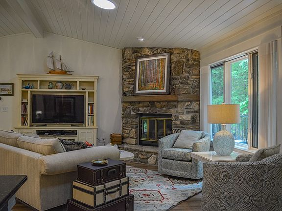 Move right in! This very private end unit (no unit above) has been professionally and tastefully renovated top-to-bottom: quartz countertops, custom dining table, "built-in but removable" bunks, Koehler baths, LVP flooring, planked wood ceiling , new electric heat pump, new deck, new sliding doors, and more. Easy, single- level living, shady back deck, attached garage. Perfectly located within the development and easy walking and biking distance to Peninsula State Park, downtown Fish Creek, restaurants, shops, and the beach. One of Door County's most established condo developments, Fish Creek Condo is nestled in a wooded twenty-one acres, offering tennis courts and a pool.