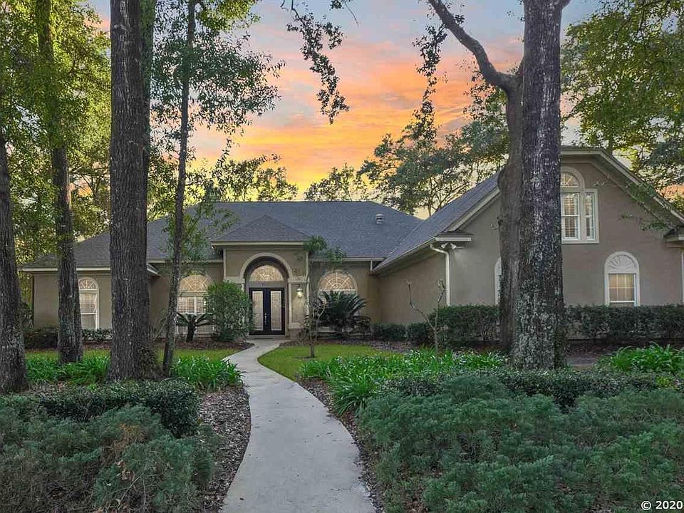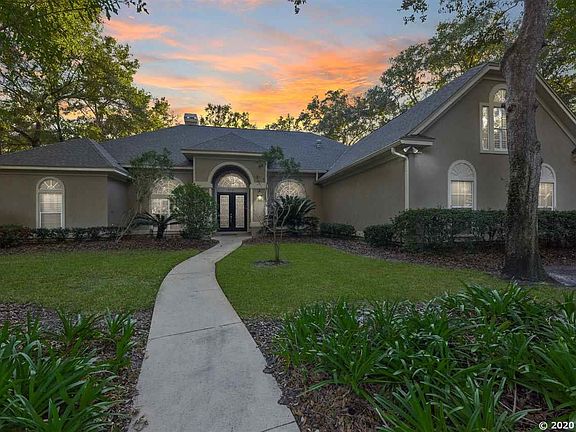 Welcome home to the wonderful Mills Glen community in the highly sought after Haile Plantation neighborhood. This 4-bed, 4.5-bath home with a new roof greets you with a grand foyer that leads directly into the open and airy living room. Complete with marble fireplace and quad sliding doors that open to the charming pool area, you can comfortably relax while enjoying the warm Florida sun. The master suite is the perfect space to come home to. With a grand sitting room, private pool access, and luxurious master bathroom, relaxing at the end of the day is a dream. In the kitchen, you'll love the double ovens, built-in refrigerator, and gas cooktop that make preparing and entertaining comfortable and easy. Hardwood floors align the home, bringing in warmth and style. Retreat to the private pool at the end of the day and enjoy a spectacular spa, fountain, and summer grill area. Minutes away from Haile Village Center, UF/Shands, and I-75, you will love this spectacular home.