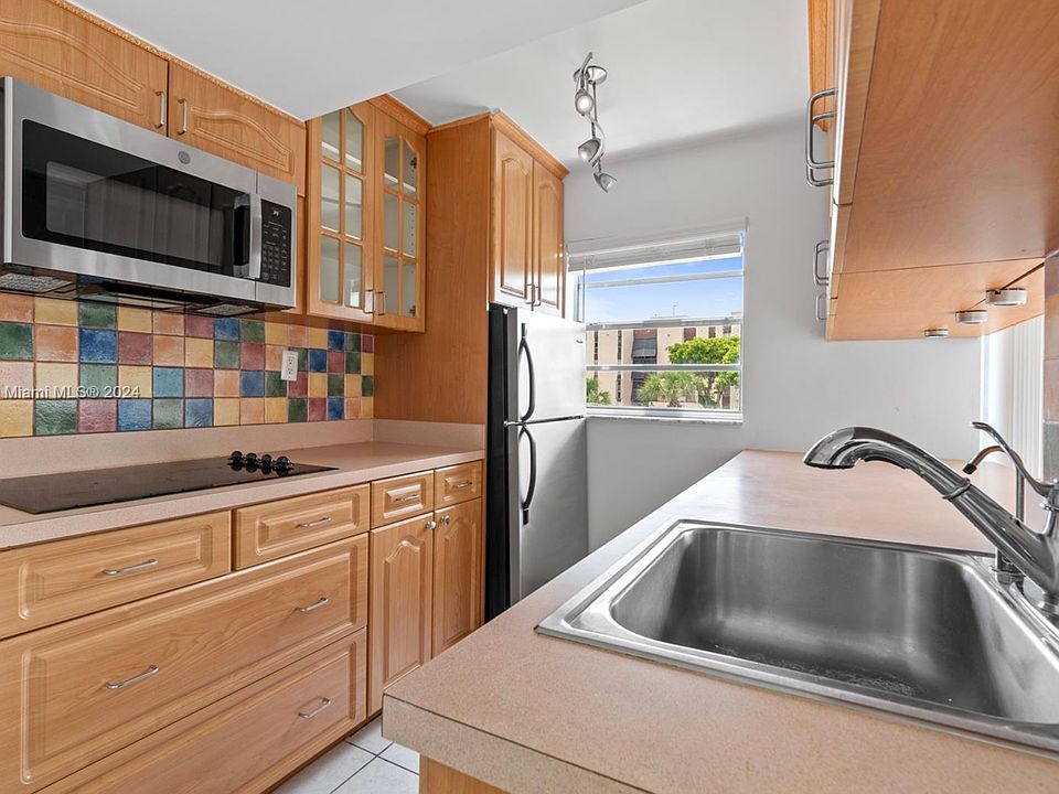 La unidad esta completamente enlosada, con banos y cocina remodelados que incluyen electrodomesticos de acero inoxidable. Amplia sala y comedor en una comunidad cerrada y bien mantenida.