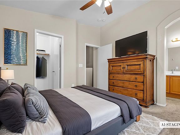 Welcome home to this townhome located in the desirable southwest gated community of Arlington Ranch. This 2 bedroom 2.5 Bath townhome boost 1,167 sq feet of living featuring dual suites. Brand new paint throughout and luxury vinyl flooring on the primary level. Neighborhood amenities include a community pool, park, multiple pet areas, and lots of guest parking all just a short walking distance from home. Close proximity to new Durango Casino (3.7 miles), grocery/shopping (1.5 miles), and Exploration Park (2.1 miles).