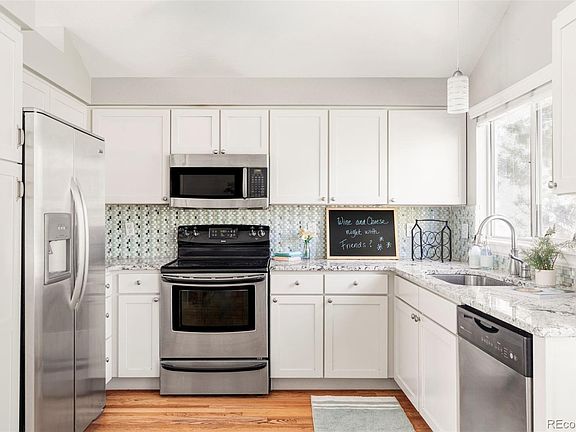 Darling, upgraded tri-level located near Whole Foods and Eastridge Rec Center. Many of the big-ticket items have already been done, to include a beautifully remodeled kitchen, upgraded bathrooms, new furnace and AC, newer water heater, and large trex deck. Upon entering you'll notice abundant natural light, vaulted ceilings with skylights, real hardwood flooring, and an inviting open-concept space. The kitchen features ivory shaker cabinetry, designer backsplash, granite counters, under-mount sink, and stainless steel appliances. A brick, gas fireplace will keep you cozy on cooler nights as you lounge in the spacious family room that overlooks a lovely, fully fenced yard. Entertain and bbq on the 240 sq ft trex deck! Upstairs you'll find three bedrooms, and two full bathrooms. The primary suite comfortably fits a king bed, and boasts a large walk-in closet, expansive windows overlooking the yard, and ensuite bathroom with updated vanity, tile and bathtub. The second bathroom is nicely remodeled and features a neutral color palette with designer tile. An unfinished basement offers room to expand, ample storage space and includes a front load washer and dryer. Roof was recently inspected and in good shape. While this home is move-in ready, there is potential to build equity with a few cosmetic fixes, updates and/or finishing the basement square footgae. Excellent rental potential here as well. Sold AS-IS.