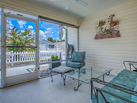Back on the Market! (Buyers had to back out) ~•SUPER LOW Bond•~ ~•Roof New in 2022•~ ~•HVAC New in 2020•~ ~•Assumable LOW-Interest VA Mortgage•~ Perfect for Florida Living or Rental Income! This Charming 2 bed, 2 bath TURNKEY* CABOT COVE patio villa in the village of Woodbury offers a PRIME OPPORTUNITY for buyers looking for a LOW-MAINTENANCE home or an investment property in The Villages! Enjoy easy living with LUXURY VINYL PLANK flooring (no carpet!), PLANTATION SHUTTERS (throughout!), and TALLER BASEBOARDS for a polished look. The kitchen is a standout with Beautiful WOOD cabinetry, OVER and UNDER cabinet LIGHTING, TILE backsplash, STAINLESS appliances, a GAS Range, and a SUNNY SOLAR TUBE. Behind the Convenient POCKET DOOR is your spacious PANTRY and the INDOOR LAUNDRY room with built-in storage. The spacious primary bedroom features a WALK-IN closet and SLIDING BARN DOOR leading to a stylish EN-SUITE bath with SOLID-SURFACE Shower and FRAMELESS glass doors. Outdoor living is a BREEZE on the side patio with THREE RETRACTABLE AWNINGS for all-day COVER and SHADE. And Behind the villa is a LARGE, GRASSY Area - no Homes Directly Behind! The whole-house water filter, garage utility sink, newer Hot Water Heater, and low bond payoff ($1,063.47) make ownership simple and worry-free. Seller has an ASSUMABLE VA Loan with a 2.2% interest rate! Seller will even include a BROWARD GOLD home warranty. Move in, relax, and start to enjoy your own slice of The Villages lifestyle today! Call today for a Private Showing! Located in the Village of WOODBURY this is a Great location that is EASY IN and OUT of The Villages w/LIGHT traffic even in Peak Season! Close to the Postal Station, Nancy Lopez Country Club, Glenview Country Club, Springdale Pool and Mulberry Grove Rec Center. Shopping, Banking, Restaurants and the VA Center are nearby! Tax line reflects property taxes only and is estimated. Bond Assessment is $197.86/year. (LOW Bond Payoff is $1,063.47.) Current Maintenance Assessment is $518.10/year. Current Fire Dept. $199.91/year. Note: Square footage information is taken from the Public Record and is deemed reliable, but not guaranteed. Room and garage dimensions are approximate and estimated: buyer to verify. *Not included in the Turnkey Package are some decorative items used for staging. ~••BE SURE TO SEE THE 3D 360º MATTERPORT WALKTHROUGH TOUR AT VIDEO TOUR 2!•~ ~•And see the Floor Plan at the end of the Photos•~