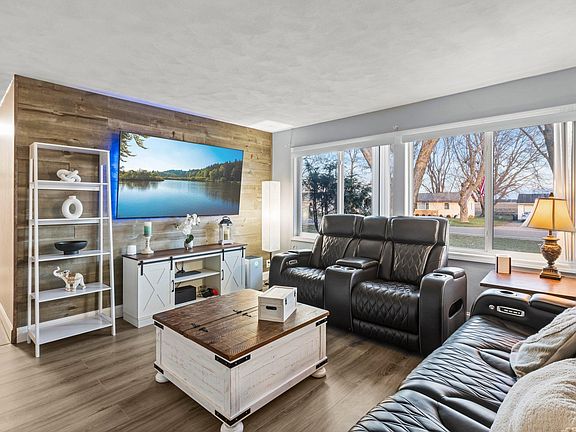 This charming three-bedroom, two-bathroom home has been beautifully updated. All bedrooms are generously sized, and the living room is filled with natural light from new windows installed in 2023. Fresh flooring flows throughout, and the spacious kitchen features sleek stainless-steel appliances, including a brand-new kitchen disposal added in 2024. The home also has Fiber Optic and Ethernet wiring throughout for added convenience and connectivity. The primary bedroom includes an attached half bath, and the large, unfinished basement offers plenty of potential. A two-car garage provides ample storage. Step outside to a private .80-acre lot with a huge backyard, firepit area, grassy space for gatherings, and a separate fenced-in area for pets. Surrounded by mature trees, this yard offers privacy and tranquility. Located just off I-35, this home offers both privacy and convenient access to nearby amenities. Come see everything this lovely home and spacious yard have to offer!