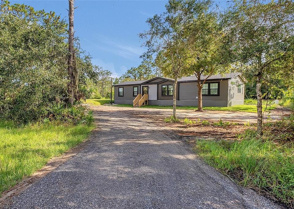 Some homes turn heads. This one stops traffic. Forget everything you think you know about manufactured homes. This one breaks the mold and builds a whole new standard. Private, polished, and unapologetically high-end. This home doesn’t whisper custom. It shouts it. From the moment you walk in, the vibe is clear: smart design, warm finishes, and every detail done right. The living area pulls it all together with beam accents, layered lighting, and a statement media wall that feels effortlessly intentional. The kitchen doesn’t try. It just delivers. Every detail earns its place with the contrast, the texture, the tone. It’s the kind of space that makes “let’s eat in” sound better than going out. Two-tone cabinetry, matte black hardware, rattan pendant lighting that throws designer-grade shadows, and a bold island built for everything from 6 a.m. coffee to midnight pizza. The dining space ties it all together — elevated, effortless, and totally ready for your people. Just off the kitchen, the walk-in pantry of dreams is ready to handle your best Costco haul and still look good doing it. Floor-to-ceiling shelving, space to stash holiday décor, and a rear exit for easy unloads. The primary suite keeps it calm and elevated, tucked off the living room for a little extra privacy. Big windows, a generous walk-in closet, and a bathroom that brings the spa vibes with LED mirrors, plenty of storage space, a freestanding tub, a gorgeous walk-in shower, and finishes that make you excited to get ready for the day. Across the home, two more bedrooms and a full bath keep things balanced. The laundry room seals the deal with built-in cabinetry, a workspace, deep sink, and the kind of function that makes adulting easier. Outside, on nearly an acre, it’s private, peaceful, and ready for whatever you dream up. Pool? Fire Pit? Garden? Yep. There's room for all of it. Modern. Confident. Unexpectedly elevated. This home doesn’t need your attention. It already has it.