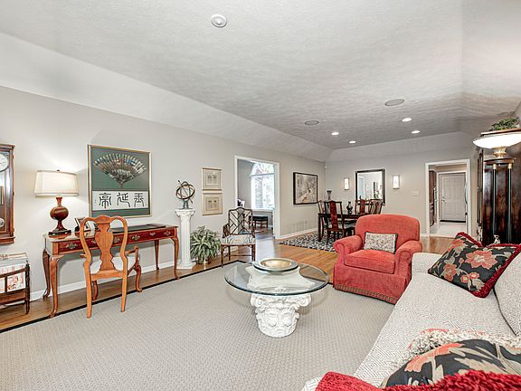 You'll be impressed with this all brick spacious home in the desirable Pyramid Point section of College Park Estates. While this home is attached, it is NOT a condo! It sits on a 2/3 wooded acre and is beautifully landscaped. The floor plan is very functional and has pleasant views from all rooms. The huge great room with solid Bamboo hardwood floors & tray ceililng and big den with cathedral ceiling and gas log fireplace, make for comfortable entertaining. In warmer weather enjoy the screened-in porch or the oversized deck with expansive views of the woods and stunningly landscaped yard. The efficient yet workable kitchen features custom cabinets, granite counters, black stainless appliances and lots of storage in the adjacent laundry room/step-in pantry. The primary bedroom ensuite is quite large and includes a tray ceiling, good sized walk-in closet and beautifully remodeled bath with dual sinks, granite, big shower with wall jets, heated marble floors and a skylight. There is also a second nice sized guest bedroom with cathedral ceiling and adjacent hall bath featuring a granite mosaic tile floor, custom cabinets and linen closet. And, the Rainbird irrigation system keeps the landscape looking lush in season. The oversized (22'x22') garage has plenty of storage with a roomy closet, built-in cabinetry, additional refrigerator and pull-down stairs leading to more storage space in the garage attic. College Park Estates was the first master-planned community in Indiana and boasts a beautiful clubhouse with large swimming pool & playground as well as tennis, pickelball and basketball courts. And the community has its own elementary school. It has an excellent mix of single family homes and condominiums with easy access to Trader Joes, Costco, and a host of restaurants and medical facilities. This is gracious one level living. Check out this beautiful home before you buy anything with fewer amenities.