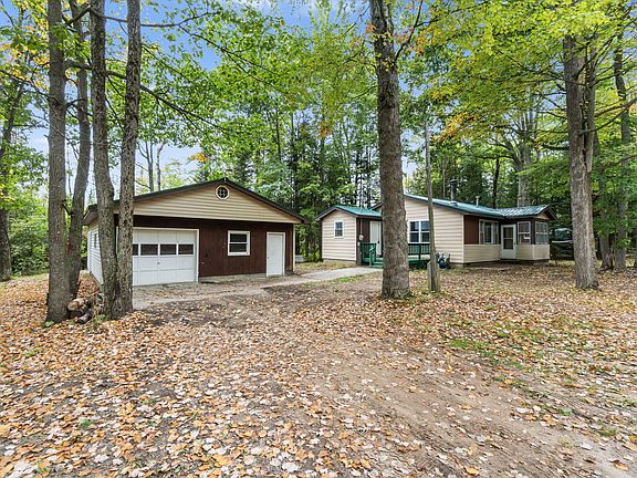 Centrally located between Gladwin, Houghton Lake, and Harrison, this 2 bed, 1.5 bath home offers comfort and convenience. Recent updates include a new metal roof and new bedroom and living room flooring (July 2025). Set on four lots totaling ±.65 acres, with a detached garage and new lofted shed. Enjoy an open floor plan with a wood stove to supplement heating. Just off M-18, close to trails and state land—perfect for year-round living or a vacation getaway.