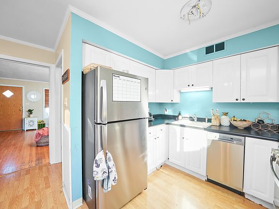 Prime Location on a Fantastic Street! This impeccably maintained, spacious tri-level home offers exceptional features and updates. Enjoy hardwood flooring in the oversized living room and bedrooms, complemented by crown molding throughout. The bright kitchen boasts updated white cabinets, an eating area with abundant natural light, and plenty of table space. All bedrooms are very spacious featuring a massive dormer bedroom on the third level with room for a second walk-in closet. This home has a large basement family room, perfect for entertaining, with a convenient yard exit from the utility room. Other highlights include a one-car garage with driveway and off-street parking, replaced windows, newer appliances (2024), updated plumbing with copper pipes, and recently paved neighborhood streets. Located within walking distance to schools, the train, shopping, and dining, and just over a mile from Brookfield Zoo. Enjoy a lively neighborhood on the 4th of July parade route, with walkable access to downtown Brookfield. This is a must-see home in a great community!