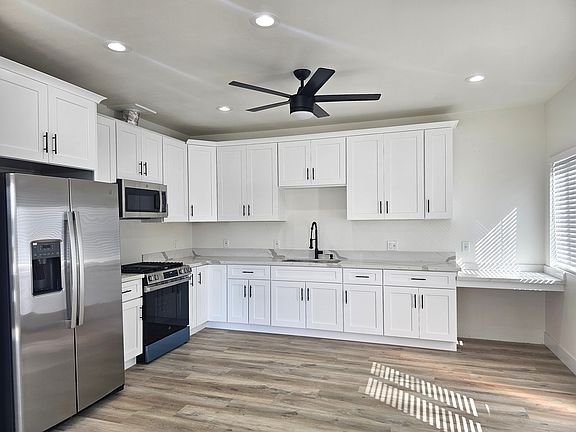 Welcome to 9325 Magnolia Ave, Unit A a beautifully renovated 1922 residence nestled in the heart of Riverside. This spacious downstairs unit features 3 bedrooms and 3 baths, thoughtfully updated from top to bottom for modern living. Inside, you'll find a bright open layout with hardwood-style flooring, recessed lighting, and stylish fixtures throughout. The kitchen shines with quartz countertops, sleek cabinetry, and stainless-steel appliances ideal for both daily use and entertaining. Each bedroom offers ample space and natural light, with two featuring private en-suite baths. Above, a separate 2-bedroom, 2-bath unit includes its own kitchen and laundry hookups, offering versatility and privacy. Situated on a gated 10,000 square foot lot, the property provides generous parking and easy access to local shopping, dining, and major freeways. Parking and in-unit laundry are included. A perfect opportunity for a live/work setup or multi-generational living.