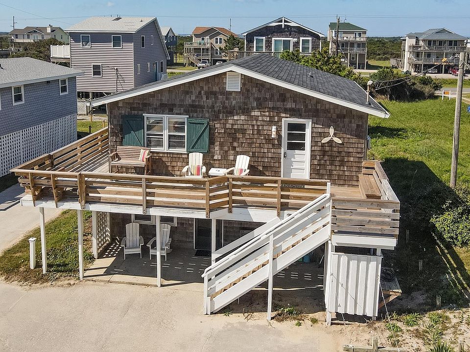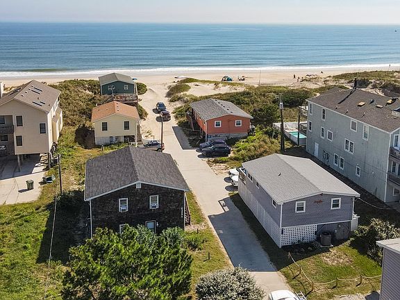 Step into classic Outer Banks charm with this cedar shake beach box style home, ideally located just 100 feet from the ocean in Nags Head. This charming home offers the perfect blend of character and opportunity, making it an ideal family retreat or a great rental prospect. Currently, this home is being rented as two separate units both with 2 beds/1bath, an eat-in kitchen and living room. With separate entrances for the upstairs and downstairs spaces, this property allows for a myriad of functional uses. Lovely ocean views from the top floor inspire thoughts of coffee on the deck while catching breathtaking sunrises over the Atlantic, days of surf and sun, and evening strolls on the beach at sunset. The home’s simple design, functional layout, and unbeatable location capture everything people love about the Outer Banks lifestyle. Ask agent for list of updates.