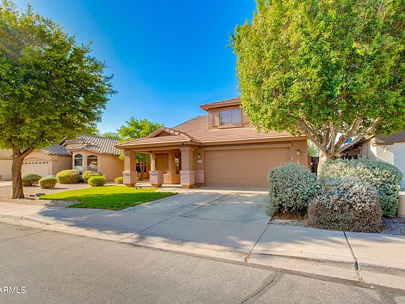 Welcome to this charming Mesa home in a highly desirable neighborhood! This property offers four generous bedrooms, two and a half bathrooms, two separate living areas, and a brand new AC unit. The great room boats natural light with elegant window coverings and an open concept kitchen with dark cabinets and Corian countertops. The oversized primary bedroom is a true retreat that leads to a large en-suite with separate shower and soaking tub and is complimented with a walk-in closet! Outside, you will enjoy a sizeable private yard backed up to a community park. Enjoy the peace while relaxing in a hammock or entertaining guests. Located close to top-rated schools, shopping, and dining, this home combines convenience with modern upgrades! Flooring credit negotiable with accepted offer.