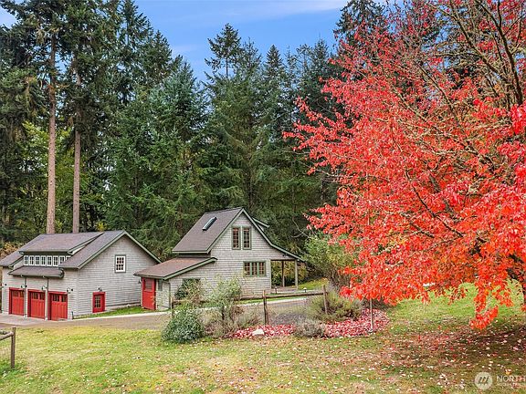 Set amid 14+ acres of pristine Northwest forest, this private enclave offers a rare blend of natural beauty and contemporary design. The gracious covered entry invites you into light-filled interiors where elegance meets modern comfort. French doors open to an expansive ironwood deck overlooking a private paradise framed by fruit trees & mature landscaping. The main-level primary extends outdoors to a private patio, hot tub & shower. High-end finishes ensure ease and sophistication, while modern amenities promise efficiency & comfort. The precious woodland cottage & 3 car garage + studio complete this extraordinary offering. Centrally located between downtown, schools, and the beach, delight in quiet abundance and comfort on Vashon Island!