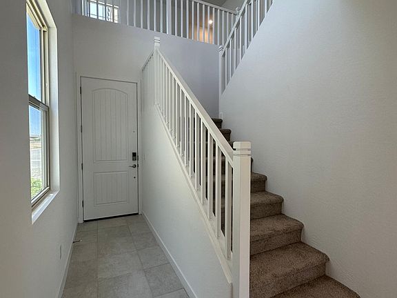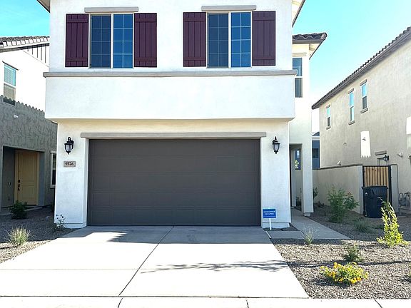 House only 2 years old. Kitchen with granite countertops, grey wood-toned shaker cabinets, black fixtures, gas stove, and high-end fridge. Upstairs laundry with W/D included. Bathrooms with black fixtures and square sinks with master en suite. All bedrooms upstairs with split floorplan. Flooring is tile in wet areas and carpet. 2" blinds and ceiling fans throughout. Home includes whole home air purifier and water softener. Private backyard and no homes behind. Walk to parks and Eastmark amenities. Apply now! Won't last long!