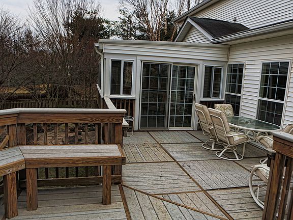 NATURE lovers paradise! Extensive landscaping, patios & walkways. 3 season sunroom/porch & huge deck. Private fenced lot backing to woods. Formal LR & DR w/ bay windows & hardwood floors. Gourmet kitchen w/ granite. HUGE family room w/ fireplace. Main level office Master suite w/ vaulted ceilings, sitting area & walk-in clst. Luxury bath w/ soaking tub. Nice size bedrooms. Laundry on upper level.