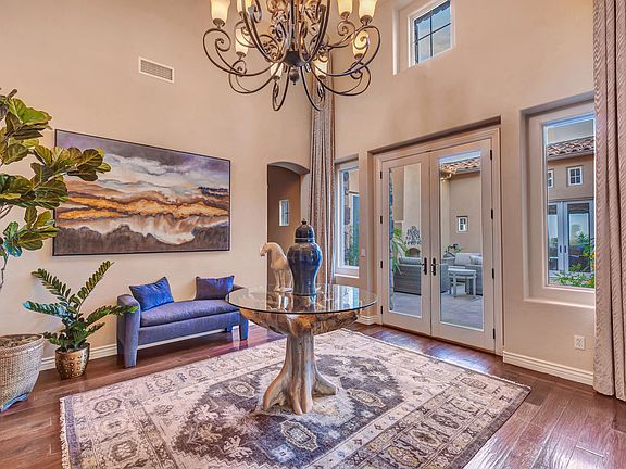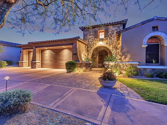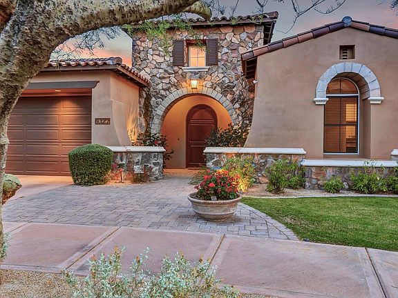 Beautiful DC Ranch single level home with stunning resort backyard & amazing view! The home offers a split master floorplan built around a central courtyard with fireplace and water feature. The chef's kitchen offers upgraded granite countertops, custom cabinets, 6-burner Viking cooktop, Subzero refrigerator, double wall ovens and wine fridge. The master suite features a cozy sitting area, steam shower, soaking tub, built in beverage fridge, custom closets, and upgraded cabinetry and countertops. The south-facing backyard with extensive Cantera tile patio and beautiful landscaping offers a vanishing edge pool, fireplace with sitting area, built-in Viking BBQ with 2-burner grill and bar seating, all situated to enjoy Arizona sunsets and twinkling city lights. **Furnishings can be Included!*