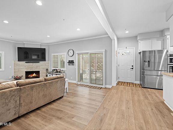 Get away from it all...but stay really close. Welcome to Chatsworth Lake manor where you can do just that! Tucked in the peaceful mountain setting this highly updated & upgraded 3 bedroom home comes to the open market today. Featuring newer wood style flooring, 6 panel doors, open step down living room with fireplace, and a beautiful kitchen & dining space! Galley style kitchen with large peninsula, plenty of cabinet space, stainless appliances, and slab stone counters. Also on the main level we have a powder bath, direct garage access with laundry, and a slider to the rear yard. Modern paint scheme throughout with recessed lighting, shutters on all windows, and many trim, case, and crown moulding touches. Continuing to the upstairs we have a custom wrought iron railing bringing you to the bedrooms and 2 bathrooms. 2 bedrooms down the hallway with a shared bath that features dual sink vanity, large custom tiled walk in shower with full glass door, bench & niche, and bronze fixtures & faucets! Opposite of these rooms we enter the master bedroom suite with a walk in closet, vaulted ceilings, and a huge bathroom suite with separate tub surrounded by tiled steps and surround, dual sink vanity with slab quartz top, and an oversized shower stall with large format tile & accent work, bench seat with niche, full glass door, and bronze fixtures & faucets to match! Front & rear yards have low maintenance hardscape with turf, nice parking space, and walking right up to hiking trails & parks from the front. Backyard also has a built in BBQ and full length patio & shade bar overhang cover, and pedestrian door with direct kitchen access! This home has everything you need with virtually nothing left to be desired, come see this one today!