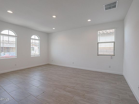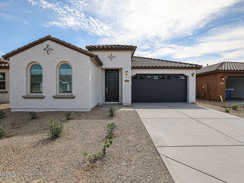 Experience modern living in this stunning 4-bedroom, 3-bath home with a den and the Platinum Upgrade Package. Enjoy quartz counters, upgraded sinks, faucets, floor tiles, and a spa-like walk-in shower in the primary suite with dual sinks and a walk-in closet. The open layout boasts neutral tile floors, recessed lighting, and multi-sliders merging indoor and outdoor spaces. The kitchen features wood cabinetry with crown molding, stainless steel appliances, a pantry, and island breakfast bar. Smart home features include thermostat, locks, garage, and media panel. The backyard with covered patio is ready to be your retreat. Conveniently located near Estrella Mountain Regional Park, Costco, I-10, and shopping.