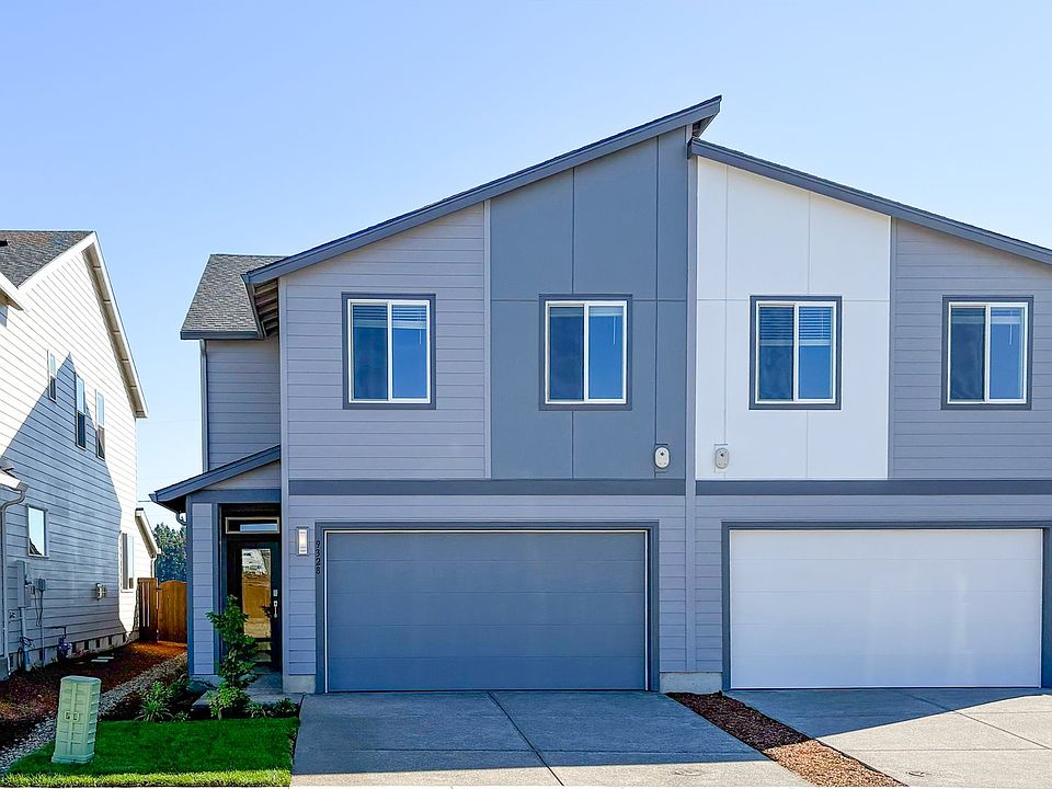 This new construction duplex is located in Autumn Sunrise, a new community minutes from I-5, shopping, and dining featuring an onsite community park with a playground, fire pit and basketball and pickle ball courts. The Dawson plan features a two-story design with an open main floor that connects the great room, kitchen, and dining area, with sliding doors leading to a backyard patio. A gas fireplace adds extra comfort, while upstairs offers three bedrooms including the primary suite with a private bath and large walk-in closet. Interior finishes include quartz countertops, stainless steel appliances, LVP flooring, fencing, and landscaping. This home also includes central air conditioning, a refrigerator, washer and dryer, and blinds—all at no extra cost! Located on homesite 230, this home is expected to be complete in fall 2025. Rendering is artist conception only. Photos are of a similar home, features and finishes will vary. *Below-market rate incentives available when financing with preferred lender.*
