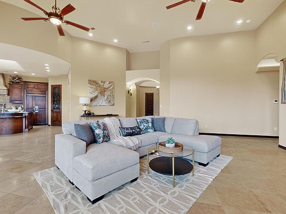 Custom Mediterranean style, one story 4420 sf home on .89 acres in prestigious North Albuquerque Acres features a spacious great room w/ tall ceilings opening to a top of the line kitchen w/ custom cherry cabinets, granite counters, Viking & SubZero appliances, huge island, butler's pantry & dining nook with views. Home has 4 bedrooms each w/ its own bath, an elegant dining room, a game room & formal living room or private office. Lots of room in the oversized 4 car garage w/ tall RV door, workshop area & separate room for hobbies / storage. Home has hand carved 8 ft alder wood doors, travertine floors, radiant heat, refrigerated AC & newer stucco & TPO roof. NO HOA. Mountain views from portals. OPEN Sun 6/8 12:00-2:00 for backup offers.