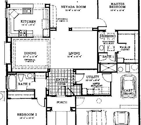 Sun City Summerlin! PRICED TO SELL! Resort style living. Remodeled!! Gorgeous kitchen. LUXURY VINYL PLANKS throughtout. Gated courtyard. Spacious family, dining & living rooms. Greenbelt views & covered patio. Wall between Living/Family/den can be easily removed to create an open concept layout or use as den/crafts/office! PLANTATION SHUTTERS, carpet in bedrooms, 5" UPGRADED baseboards. White cabinets, UPDATED sinks, faucets, Kohler toilets, GRANITE counters & DESIGNER LIGHT FIXTURES in kitchen & both bathrooms. STAINLESS STEEL APPLIANCES. Built in microwave, designer tiled backsplash, breakfast bar w/pendant lights & nook w bay window. Primary suite has bay window, bath w lg walk-in closet, double sinks, shower. Laundry room converted to office. Front load Washer & dryer in garage, PLUS sink. ALL APPLIANCES INCLUDED! SOLAR SCREENS. Sub-HOA maintains landscape. Sun City Summerlin has a variety of community facilities Pools, gym, activity centers, Arts & Crafts, Golf, tennis etc.!