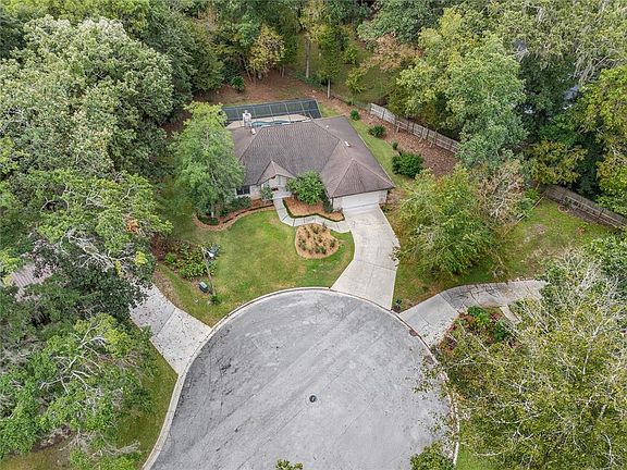 One or more photo(s) has been virtually staged. Welcome to 9329 NW 14th Place, a charming 3-bedroom, 3-bathroom pool home set on just under half an acre in the peaceful, non-HOA community of Oak Crest. Tucked away on a quiet cul-de-sac, this one-owner home has been lovingly maintained and is brimming with potential for easy cosmetic updates that will create instant equity for its next owners. The inviting curb appeal is framed by mature trees and a wide, pie-shaped lot that offers exceptional space and privacy. Step inside to discover a thoughtfully designed split-floor plan anchored by a massive living room with soaring vaulted ceilings and a cozy wood-burning fireplace. The traditional dining room and a bright eat-in nook off the kitchen provide flexible spaces for gathering and entertaining. The kitchen is equipped with recently updated stainless steel appliances, and the home’s HVAC system has also been replaced for added peace of mind. The spacious primary suite is a retreat of its own, featuring a large walk-in closet and an ensuite bath complete with a jetted Jacuzzi tub, a walk-in shower, and abundant natural light. Bedrooms two and three are generously sized, and the third full bathroom includes exterior access to the pool area, making it a convenient dedicated pool bath. Outdoors, a triple sliding glass door opens from the living room to a covered patio overlooking the screened-in pool. The pool area is well-maintained with an updated pool pump and filtration system, a cleanly surfaced deck, and a solar heating setup for extended swim seasons. Practical features include an interior laundry room with a utility sink and the washer and dryer already in place. The wide cul-de-sac lot provides extra space between neighbors along with a generous cleared yard area for recreation or gardening. Oak Crest is ideally located in west Gainesville, zoned for highly rated schools and just a short drive to shopping, dining, and recreation in the Jonesville and Tioga areas. It offers quick access to I-75 via Newberry Road, is minutes from UF Health/Shands and North Florida Regional hospitals, and only about 15 minutes from the University of Florida. This is a rare opportunity to own a well-cared-for home in a sought-after location, ready for your personal touch to unlock its full potential.