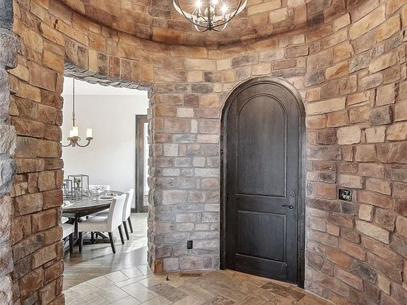 - Description: Hickory Hardwood Floor, Sliding Glass Door To Interior Front Courtyard, Wrought Iron Chandelier, Display Arch With Accent Lighting, And Butler Pantry With Wine Refrigerator, Slab Granite Countertops, Upper Cabinets With Glass Front Doors And Soft Close Lower Cabinets For Additional Storage.