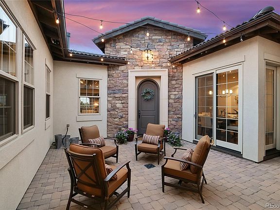 The finished walkout basement is fully equipped for entertaining, showcased by a gorgeous wine grotto featuring a Sub-Zero wine cooler holding 150 bottles, but was also planned with relaxation in mind. In addition to a generous rec space, exercise room and guest suite, locate a unique, heated workshop complete with three workbenches and custom LED lighting. Enjoy a Colorado sunset while you work on your short game on the putting green or relax on the covered lower-level paver patio. Perfectly crafted to make lasting memories with friends and family.