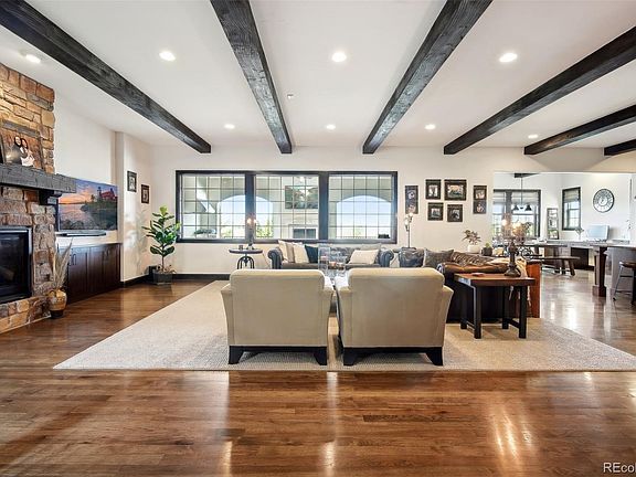 - Description: Hickory Hardwood Floor, Wood Box Beams On Ceiling, Three Picture Windows With Stunning Views, Gas Log Fireplace With Stone Surround And Wood Mantel, Built-In Storage Cabinets, Mounted Tv Is Included.