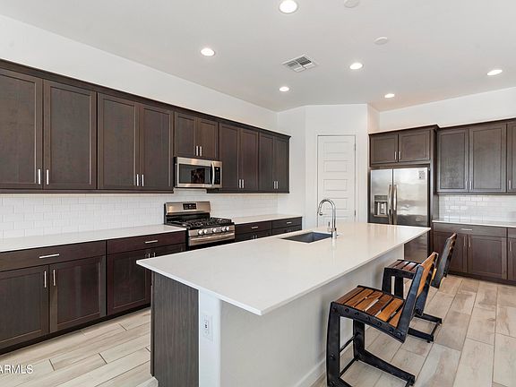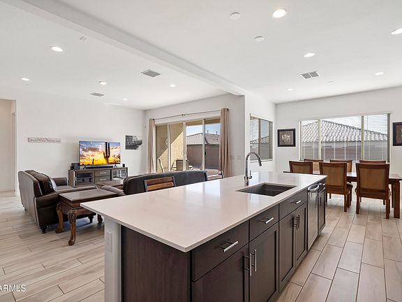 Discover a rare chance to own a coveted Trillium model next gen home in the sold out community of Western Enclave. The private in-law suite offers its own entrance and side yard with no direct access to the main home. A month-to-month tenant can stay for income or vacate at COE. The main home features high ceilings, dark wood cabinets, a large island, and an open layout with a low-maintenance yard. Community perks include a pool, pickleball courts, playgrounds, dog parks, sport courts, ramadas, walking paths and greenbelts. Minutes to Cardinals Stadium, Westgate, Tanger Outlets, Desert Diamond Casino, dining, and freeway access.