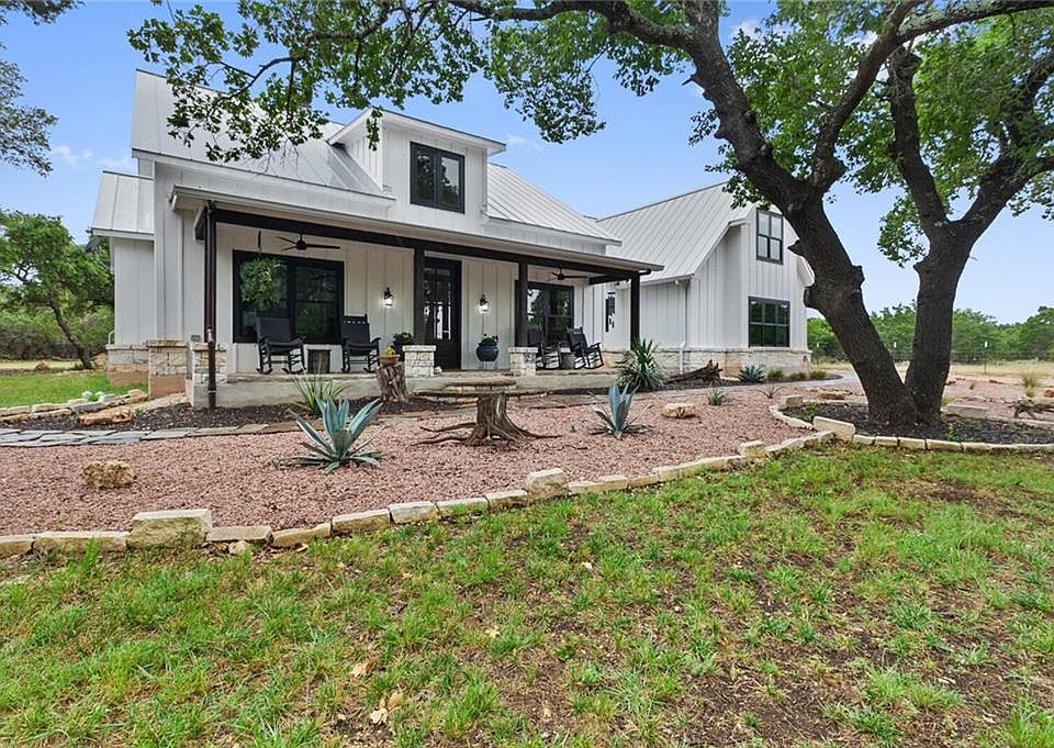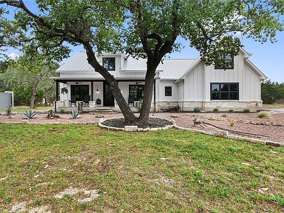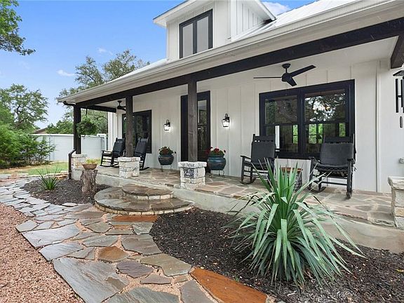 Gorgeous custom home on 1.5 acre private treed lot minutes to Dripping. One of a kind home w/touches of modern appeal. Crisp white paint, light-filled space & earthy wood floors make for a stylish balance of formal spaces & cozy living. The kitchen has perfectly blended leathered granite countertop, wood accents, & high-end cabinetry.High ceilings add grandeur to the open living. Bonus rm & full bath up. Oversized porches, fire pit & workshop. Addt'l 1.5 acres avali.
