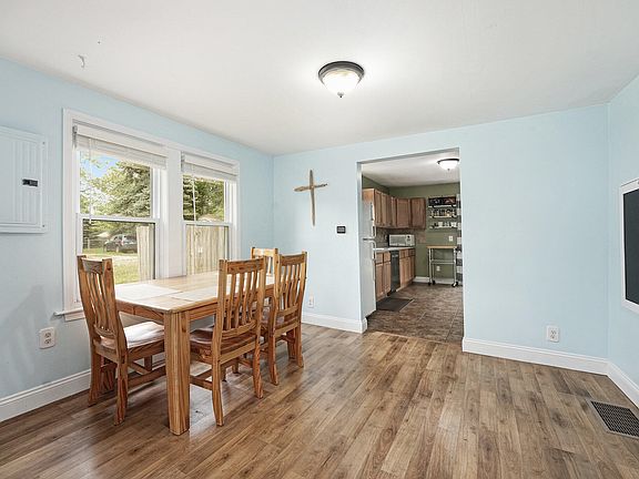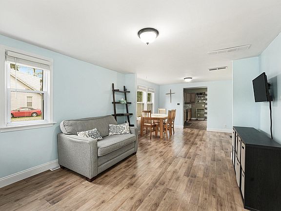 Step inside and be greeted by bright, open living spaces light-filled rooms that invite you to relax and stay awhile. The main floor flows easily from the living area to the dining space and into an updated kitchen, where you'll find generous cabinet storage, tile floors, stainless steel appliances, and a recently added dishwasher (2023). Laundry is thoughtfully located in the kitchen, keeping everyday tasks within easy reach. Fresh paint and modern fixtures throughout give this home a crisp, refreshed feel. Upstairs, the bedrooms offer a peaceful retreat, each with its own unique charm. One features warm pine paneling perfect as a bedroom, nursery, or creative space.