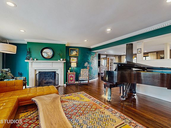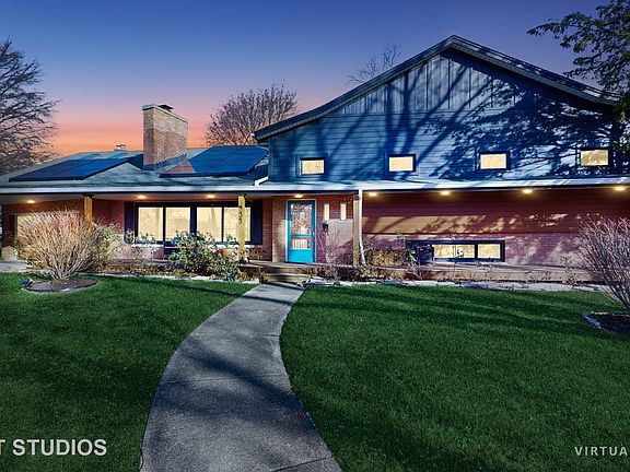 Facing beautiful Leavitt Park which is home to Flossmoor's world-class garden & sculpture walk, this one-of-a-kind, artful 4+BD/3BA mid-century sprawling split-level home will make you swoon! This home is built for entertaining. The open floor plan on the main level provides generous space for all your entertaining needs yet still feels warm and cozy for quiet nights. Lots of great recent updates including a fabulous and functional newly design kitchen (2021), a smartly built-out mudroom (2024), 200+AMP electrical panel (2021), two new HVAC systems (2022), newer LP siding & original Chicago brick, custom Renewal by Andersen windows & frames (2021), newer leaf guard gutters, refinished hardwood flooring (2021), stunning curved walls, custom moldings, trim and paint throughout. Lower level has a great family room, 4th bedroom, a full bathroom, and the office area has easy plumbing access to convert to a wet bar or in-law kitchen! Upstairs you'll find three bedrooms and two bathrooms, both with tastefully updated features including a new xl shower in primary bathroom. The new partially finished attic space currently serves as a gym and a secluded artist's studio with skylights and storage that can be easily suited to meet your needs. The new XL slider door on the main level leads you to the NEW paver patio, built-in grill area, and lovely yard and fire pit! Walking distance to library, one of a kind shops and dining, Metra to Millennium Park, and all the amazing HF schools! Truly a one-of-a-kind neighborhood. Welcome home!