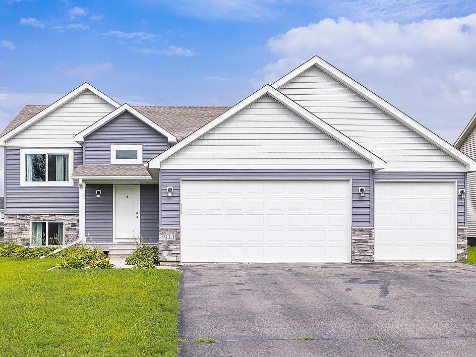 Welcome to 933 Cobblestone Lane — a spacious and inviting split-level home designed for both everyday comfort and effortless entertaining. Step inside to discover an open-concept layout featuring soaring 13-foot vaulted ceilings, abundant natural light, and a seamless flow between the kitchen, dining, and living areas. The kitchen is thoughtfully laid out with a center island, pantry closet, and informal dining space that overlooks the backyard with future deck access. Upstairs, the private primary suite offers a generous walk-in closet and full ensuite bath, while two additional bedrooms and a second full bath complete the upper level. The fully finished walkout lower level expands your living space with a large family room, two more bedrooms, a third full bath, laundry area, and plenty of storage. Enjoy the comfort of a fully finished lower level—without the price tag of new construction. Conveniently located with quick access to Hwy 169 and just minutes from restaurants, schools, and essential amenities, this home delivers the perfect blend of space, style, and location. Schedule your showing today!