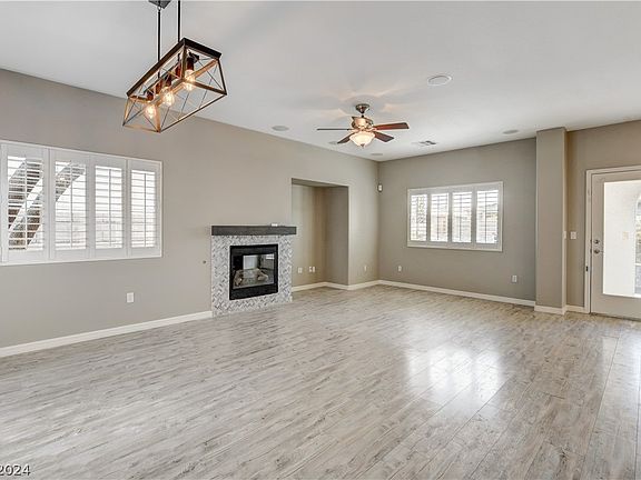 Gated Summerlin home in the heart of the Paseos boasts many features like a detached casita (4th bedroom) with full bath towards the front of the house; a courtyard with fireplace and media center sits between the main house & casita for outdoor entertainment; and a hard to find primary bedroom downstairs. The kitchen features a double oven, gas cooktop & built in microwave. Granite counters and counter height island used for conversations and eating. Pool & Spa w pebble tech Primary bathroom has separate tub and shower with expansive walk-in closet. Plantation shutters and/or window coverings throughout home. Custom iron gates welcome guests as they enter the intimate courtyard setting. Beautifully maintained mature landscape in front and back of home. Total living area is 2195 which includes detached Casita which is 220 sq ft.