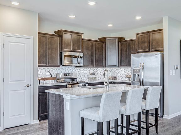 MODEL HOME FOR SALE!!! This beautiful UPGRADED & FULLY LOADED MODEL HOME is just steps away from the amazing amenity-packed clubhouse! Upgrades galore in this home featuring wainscoting, tile backsplash, custom window treatments, Vinyl plank flooring and so much more! All appliances included! Spacious Ranch Duplex home with covered patio great for your morning coffee. This Clara home includes 2 bedrooms, a den, 2 bathrooms, a covered patio, and a 2-car garage. The open kitchen features a large island with quartz countertops, an overhang for extra seating and entertaining, a pantry, designer cabinets, and stainless steel appliances. The primary bedroom includes a spacious walk-in closet, a private bathroom with a seated shower, dual sink comfort height vanity, and a linen closet. Located on a professionally landscaped homesite at Lincoln Valley in North Aurora, an amenity-rich clubhouse community that offers a health club, fitness studio, pool, bocce ball courts, pickleball court, and walking trails. Red Oak Nature Center is directly across the street to enjoy all it has to offer for outdoor activities. All Chicago homes include our America's Smart Home Technology which allows you to monitor and control your home from the comfort of your sofa or from 500 miles away and connects to your home with your smartphone, tablet or computer. Home life can be hands-free. It's never been easier to settle into new routine. Set the scene with your voice, from your phone, through the Qolsys panel which you can schedule it and forget it. Your home will always await you with your personalized settings. Our priority is to make sure you have the right smart home system to grow with you. Our homes speak to Bluetooth, Wi-Fi, Z-Wave and cellular devices so you can sync with almost any smart device. Builder Warranty 1-2-10. Photos are of the actual model home, furniture not included.