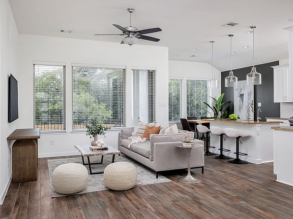 This stylishly reimagined 3 bed, 2 bath, 1 story was built in 2019 and is a must see! Upon entering the home you are greeted with an inviting living space, beautiful wood flooring, high ceilings, and open floor plan, great for entertaining. The kitchen is light and bright and offers stainless appliances, beautiful finishes and fixtures, a pantry, and an island/breakfast bar. It is open and adjacent to a spacious dining area where you can enjoy views of the private backyard. The primary bedroom is large and the ensuite bath features a walk-in shower, soaking tub, dual vanities, and a walk in closet. Secondary bedrooms are a nice size and share another beautiful full bathroom. Enjoy the spacious and private, fenced, and nicely landscaped backyard. Located in the popular Palmera Ridge master planned community with great amenities, including a pool, clubhouse, park, and trails. Easy access to the 183A Toll Road, Ronald Reagan Blvd., shopping, and restaurants. Schedule your showing soon and make this your home!