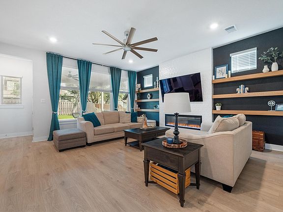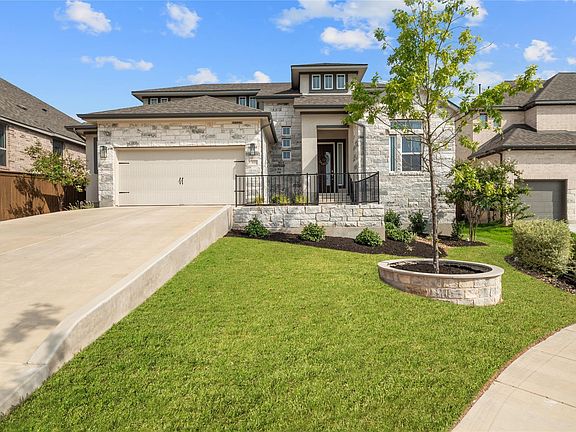 Designed for Living, Built for Memories! Tucked away on a quiet cul-de-sac in Leander’s award-winning Bryson community, this stunning 5-bedroom, 4.5-bathroom home is more than a place to live, it’s where life unfolds beautifully. With 3,064 sqft of thoughtfully designed space, every detail invites comfort, connection, and effortless entertaining. At the heart of the home lies a kitchen that inspires. The rare double island isn’t just a feature, it’s a gathering place for holiday feasts or casual Sunday breakfasts. Open to the living and dining areas, it’s a space that feels alive with possibility, whether hosting friends or enjoying quiet family nights in. The floor plan balances luxury and practicality. The main floor offers a primary serene suite retreat with a spa-like bathroom and generous closet, and an additional private secondary bedroom with ensuite is perfect for guests, an office, or multigenerational living. Upstairs, the game room provides a hub for movie marathons or laughter-filled nights, and oversized secondary bedrooms with walk-in closets, offer comfort and privacy. One of the upstairs secondary bedrooms features a private ensuite, ideal for teens or long-term visitors. Step outside to a backyard designed for easy living. Maintenance-free artificial turf and a spacious covered patio make outdoor dining, relaxing, or entertaining effortless. Life in Bryson is about more than your home, with a full-time activity director, resort-style amenities, parks, trails, and year-round events, it’s a place where neighbors become friends. A dog park just steps away makes four-legged family members feel at home too. Conveniently located near St. David’s Hospital, Northline, Cap Metro rail and bus, award-winning Leander ISD schools, and endless shopping and dining, this home perfectly balances tranquility and accessibility. Beautifully maintained, thoughtfully designed, and brimming with lifestyle opportunities, this Bryson gem is ready to welcome you home.