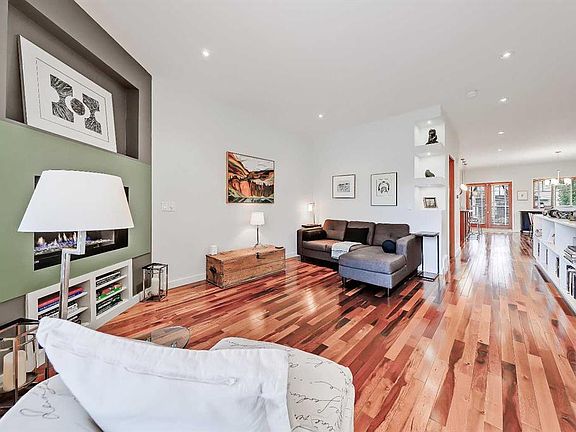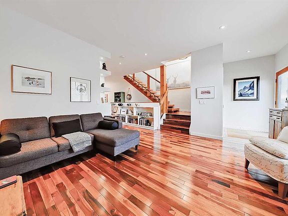 Quick possession available and updated photos! Discover this stunning semi-detached home in the heart of Parkdale, offering a blend of natural design and modern amenities. Step inside to a “modern mountain cabin” aesthetic, featuring acacia hardwood floors, fir interior doors, and oversized windows that fill the main floor with natural light. The inviting living room boasts a cozy gas fireplace, while the chef’s kitchen impresses with a walk-in pantry, custom cabinetry, premium stainless steel appliances, butcher block countertops, glass tile backsplash, and a concrete-topped island with bar seating. The spacious dining area opens to the upper rear deck through French doors, ideal for entertaining. Upstairs, the primary suite offers large windows, a walk-in closet, and a barn door leading to a luxurious five-piece ensuite with dual sinks, a freestanding soaker tub, tiled glass steam shower, and heated travertine floors. Two additional bedrooms with built-in closets share a four-piece bath, and a barn-door-enclosed laundry closet adds convenience. Handcrafted barn doors throughout the home serve as unique artistic features. The fully developed lower level includes a recreation room with flexible gym space, a two-piece bathroom, and a tiled mudroom/foyer with direct access to the heated double garage. Additional amenities include Vacmuflow rough-in, snow-melt system rough-in for the driveway, and under-stair storage. Just minutes from the Bow River Pathways and transit routes, offering easy commuting to the Foothills Hospital, University of Calgary and Downtown.