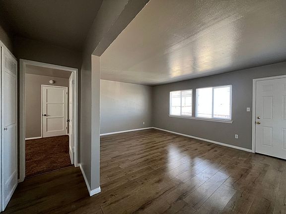 Welcome to this beautifully remodeled home in Barstow, CA! This charming house features 3 bedrooms, 1 bathroom, and a 1 car garage. The fenced backyard and covered patio provide the perfect space for outdoor entertaining. Inside, you'll find new carpet in the bedrooms, wood flooring throughout, and spacious closets in all bedrooms. Stay comfortable year-round with ceiling fans in every bedroom. With washer & dryer hookups included, this home has everything you need for convenient living. Don't miss out on the opportunity to make this lovely house your new home!