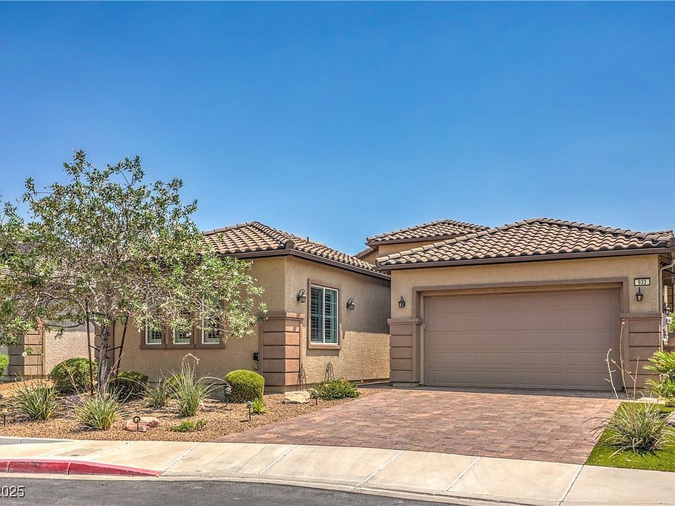 Gated front courtyardLight modern paint paletteMature landscapingExtended covered patioPrimary suitePaver patioPavered drive