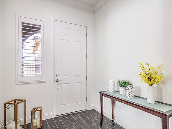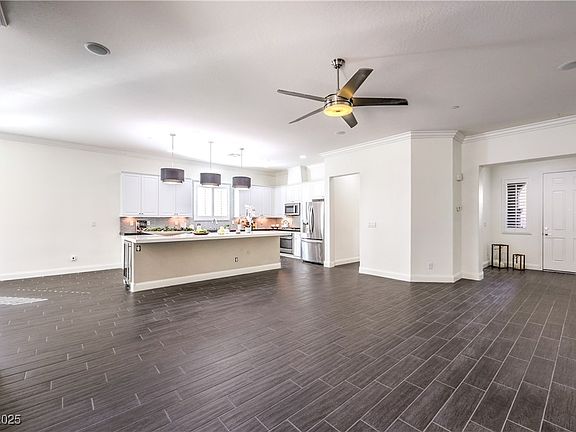 This home has it all! Just refreshed with a light, modern paint palette throughout—and the price has just been reduced! Offering Incentives! This immaculate 2,549 sq ft single-story home features 3 bedrooms, 4 baths, and 2 versatile dens—perfect for a home office, guest suite, or gym. One bedroom with ensuite bath and adjacent den creates an ideal Next Gen-style setup. Enjoy 10' ceilings, crown molding, plantation shutters, and wood-look tile throughout the main living areas. The gourmet kitchen boasts a large island, granite and quartz counters, stainless appliances, white cabinetry, and a walk-in pantry. The primary suite is separate for privacy and offers a spa-like bath. Gated front courtyard, pavered drive, tankless water heater, RO system, and ample storage. Backyard with mature landscaping, paver patio, extended covered patio, and roll-out awning—perfect for relaxing or entertaining. Stylish, spacious, and move-in ready!