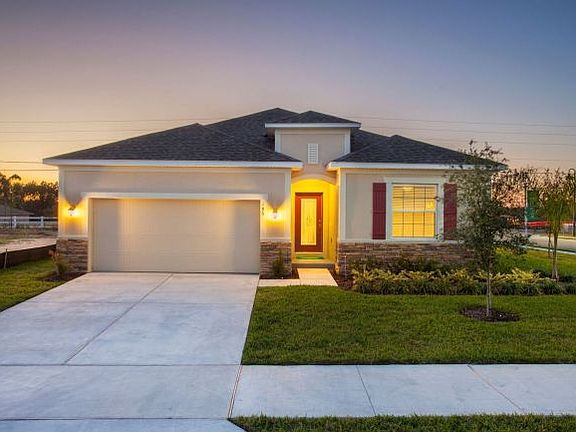 The subtle elegances of the optional shuttered front and stone front provide a touch of class to this Floridian-style home. Walking into the home you understand that an open floor plan can also offer privacy. The three secondary bedrooms all feature spacious accommodations with endless opportunities. The master suite which is located at the rear of the home boasts private bath, dual vanity, and a separate tub and shower and perfectly placed linen closet. The flow of the homes is perfectly balanced, the great room and kitchen is an exceptional use of space to entertain while the rest of the home provides privacy. The home is a well designed for any size family and is perfect for yours.