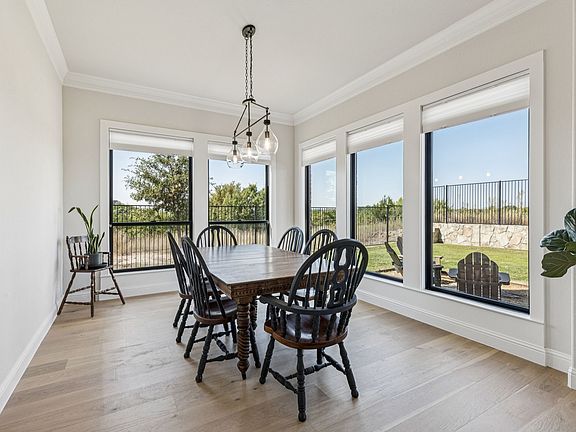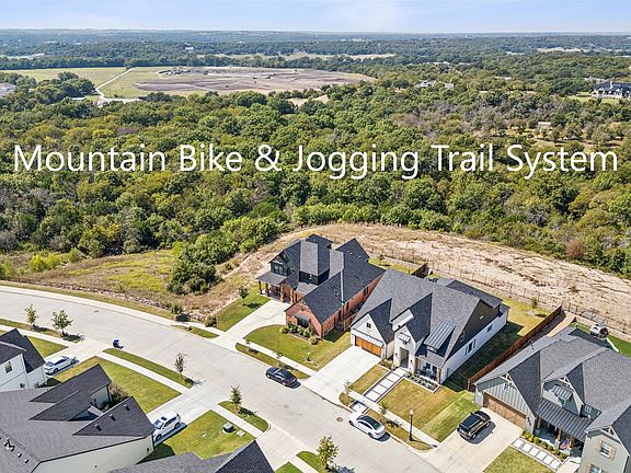 ONE-OF-A-KIND custom home, sprawling views of the Aledo countryside. Located in the highly sought-after Aledo ISD, this 5 Bedroom, 4 bath home is a unique opportunity to own a piece of serenity. The home features a custom floor plan designed to maximize the views of its 80-foot wide corner lot located on the Bluff above the popular Parks of Aledo trail system. Walk out your front or back door and jump on the 13+ miles of hiking & biking trails. Relax with your coffee or wine and enjoy the views on your wrap-around front porch or expanded back patio with a built-in outdoor kitchen. Entertainer's dream- with 3 living spaces, an eat-in gourmet kitchen complete with a 12-foot island, double-oven, and warming drawer. Relax in the primary bedroom suite with a fireplace, spa-like bathroom with an extra-large shower, and extended pass-through closet to a huge laundry room. Downstairs highlights are a study (bedroom) with full bath, media room with a 7.1 surround sound, formal living area with fireplace, and primary suite with a fireplace. There is plenty of closet space for storage, including a dedicated safe closet. Upstairs includes three bedrooms and two bathrooms, complete with a flex space for a game room. Finally, the home boasts an extra-large 800 sq. ft. 3-car garage with added space for a workshop, gym, or indoor driving range. This home has all the features a family needs or wants, so schedule a time to come see it today! In the community: sports complexes at the schools, a day care, a retirement home, grocery, drug store, quick dining and more.
