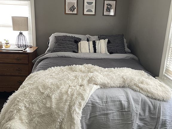 This is a private room available in a shared house. The gray room is available for rent immediately for $650/mo with an additional $75/mo for shared utilities.