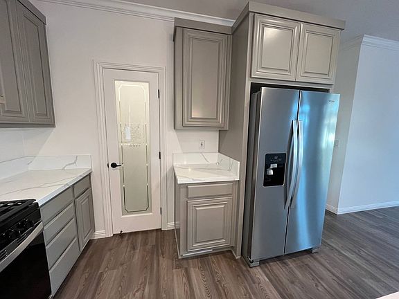 Room for a gardenElegant stall showerQuartz countersCrown moldingNew stainless appliancesSolid surface countersLinen storage